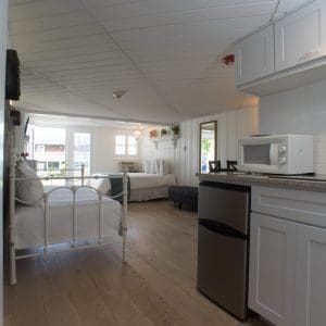 Along with 3 efficiency suites, The Main House has 12 hotel rooms, all of which have air-conditioning, cable TV, private baths with hair dryers, and small refrigerators. Daily maid service is provided. Free Wi-Fi located throughout the property. All rooms and outdoor areas are non-smoking.